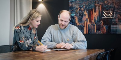 Eine Energieeffizienz-Expertin / ein Energieeffizienz-Experte verschafft sich bei Ihnen ein genaues Bild der Immobilie, prüft die Unterlagen und bespricht mögliche Maßnahmen. Fehlende Daten werden direkt aufgenommen. - Berechnung des Sanierungsfahrplans